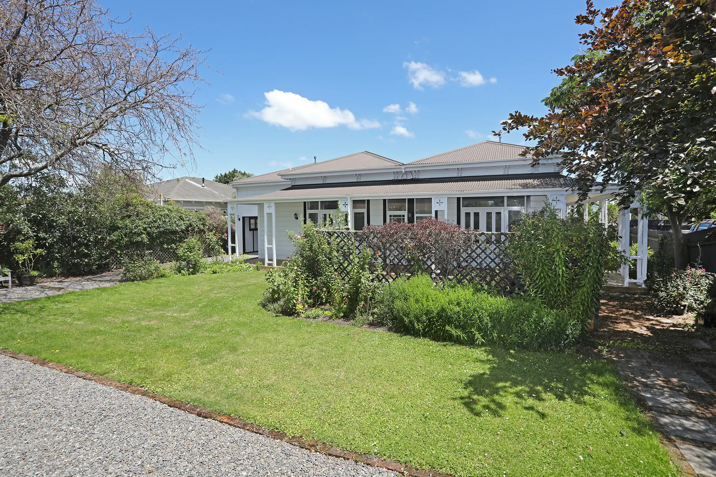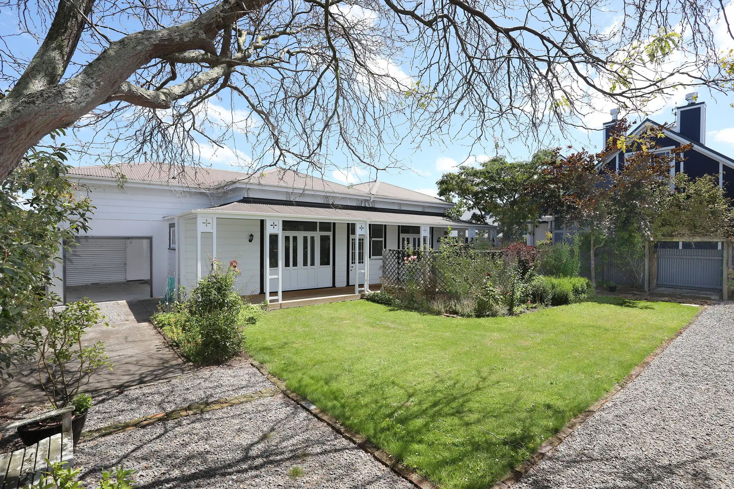 Uncommonly elegant and tasteful villa, upgraded with 3 ½ bathrooms and ducted gas central heating to provide all the comfort and convenience of a modern home, complete with internal access garage. You’ll appreciate the dignity of a high stud, wide hallways and character features with the flexible floor plan allowing a choice of 3+ lounge and dining options, including a modern kitchen/dining/family room. 3 rooms link to the wide 92m2 rolled iron verandah wrapping the home on 3 sides – chase the sun and avoid the wind. All 3 bedrooms have beautiful ensuite bathrooms, and there is a powder room. Perfect for adults or a family, and with homestay options to supplement your income. Lined internal access garage with auto door opener and open rear wall allowing for more vehicles on site, trailer access etc.