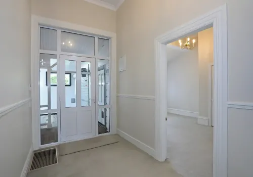 High stud and wide hallways with character from a bygone era
